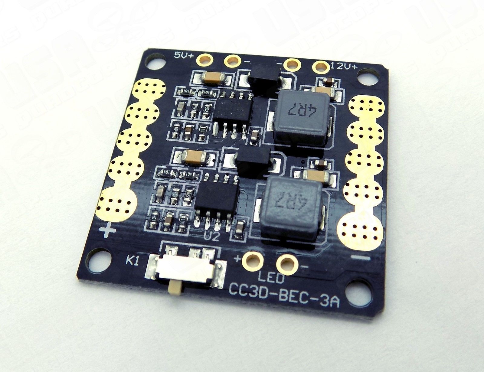 We've tested these power distribution boards in-house. They provide an ultra-clean BEC 12V and 5V output for video/accessory electronics. It also includes a switch to control the clean voltage outputs if desired. The profile fits standard compact flight controllers (30mm x 30mm) such as CC3D, Naze32, KK2 Mini, and more.