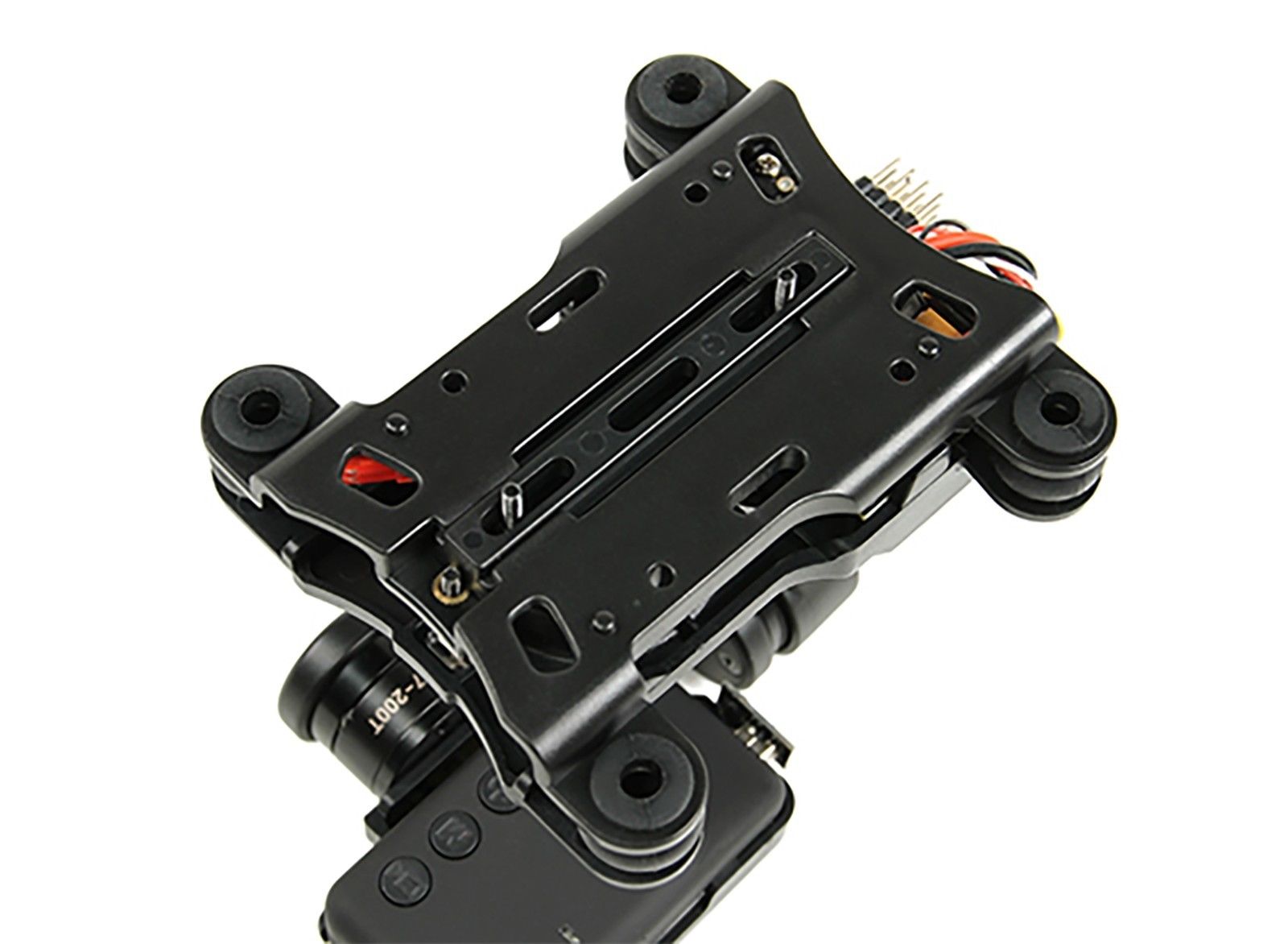 It is a fully molded construction which is glass filled providing lightweight, strength and durability. This gimbal has a quick release rail mount to ensure that your setup time is keep to a minimum. The rail comes with attachment slots that allow it to fit DJI Phantom, Quantum Nova, CX20, XK 380 and others.